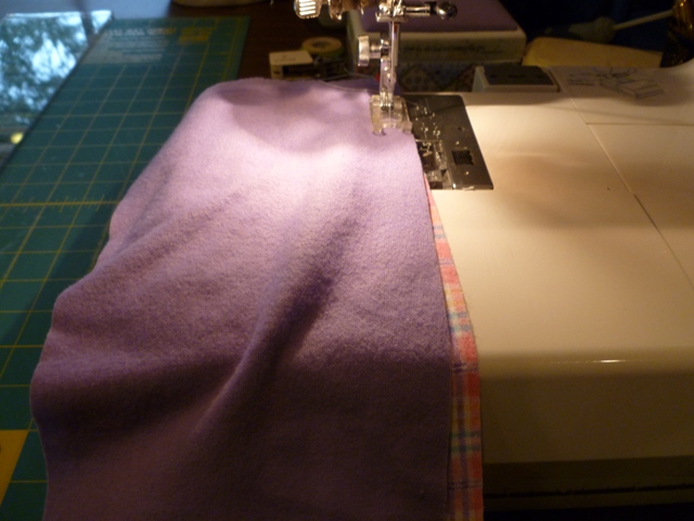 Start sewing in the middle of one side around the edge. Sew the other three sides, then come around and sew the fourth side, but leave an 8 inch gap between where you started and where you end. This technique is called "birthing" a quilt because you will be pulling the inside out, later in the instructions.